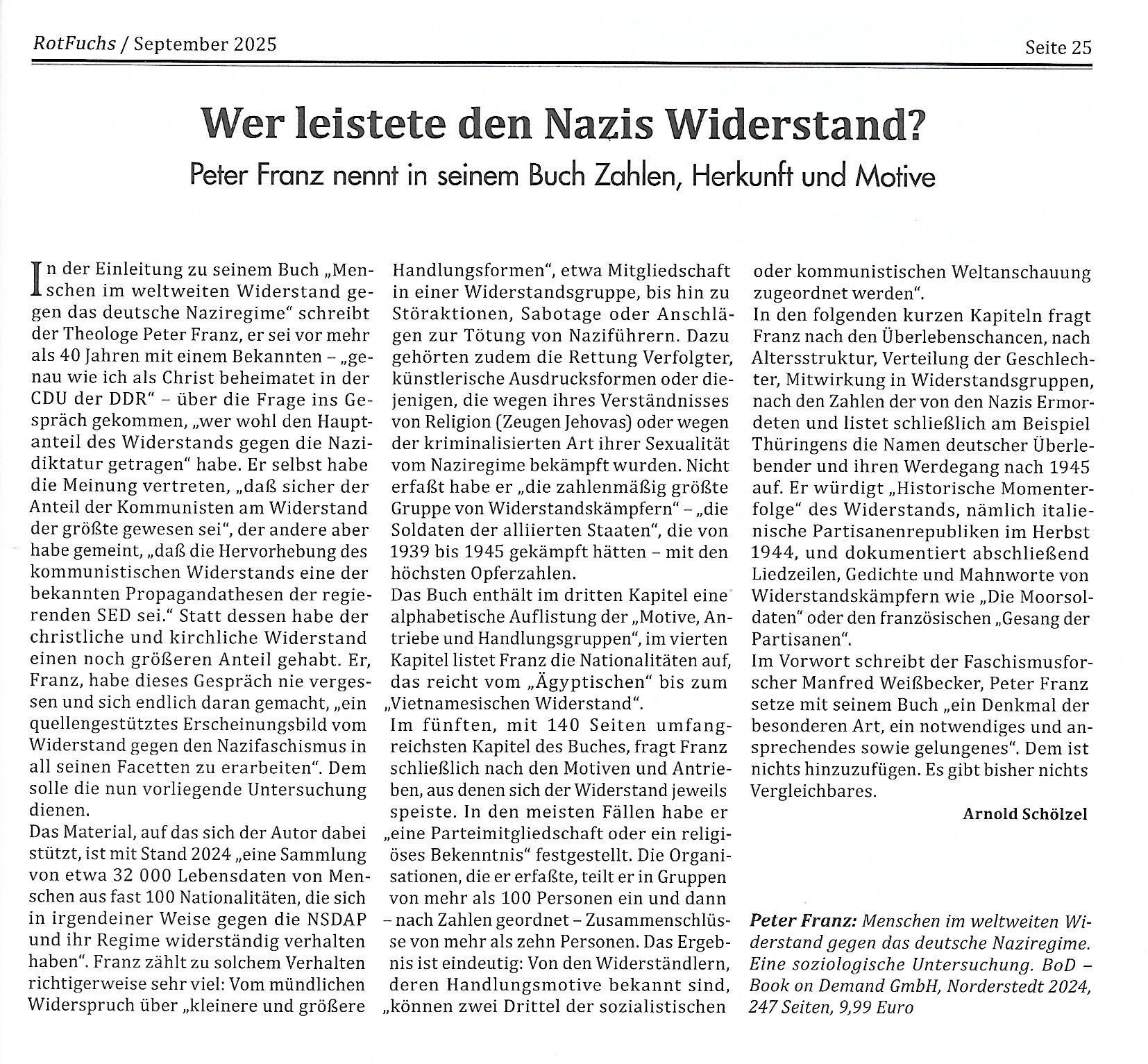 Geboren am 10. Mai 1941 in einer Arbeiterfamilie in Apolda studierte ich evangelische Theologie und wurde dann mit der Ordination auf das Lutherische Bekenntnis zum Pfarrer ausgebildet. Der Verrat Luthers an den verzweifelten Unterdrückten und sein antisemitischer Hass gegen die konversionsunwilligen Juden seiner Zeit haben aus mir einen Müntzerischen Pfarrer werden lassen. Ich wurde von der Lutherischen Amtskirche 1992 mit Berufsverbot belegt 1). Seit einigen Jahrzehnten erforsche ich das ehemalige jüdische Leben von Apolda und bin Kurator des von einem Verein zur Rettung eines jüdischen Geschäftshauses und zu seiner Ausgestaltung als Lern- und Gedenkort gestalteten Museums. Im Eigenverlag eines Vereins bin ich an der Verfassung und Herausgabe von etwa 100 Büchern und Schriften beteiligt: https://de.wikipedia.org/wiki/Prager Haus_Apolda. 2016 wurde ich mit dem Obermayer German Jewish History Award ausgezeichnet.